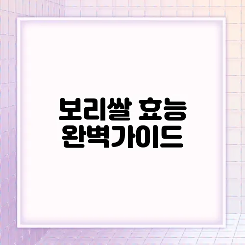 보리쌀 효능 완벽가이드